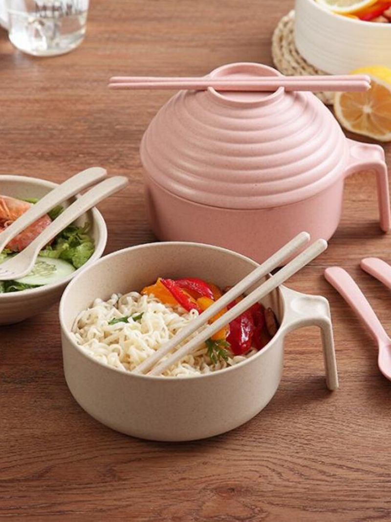 Κουτί Μεσημεριανού Γεύματος Με Άχυρο Σιταριού Με Χυλοπίτες Με Καπάκι Μπολ Chopsticks Σετ Σερβίτσιο Πιρούνι Κουταλιού