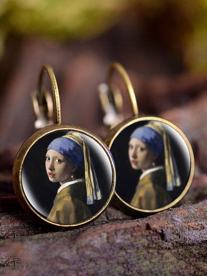 Κρεμαστά Σκουλαρίκια Vintage Glass Famous Oil Printing Γυναικεία
