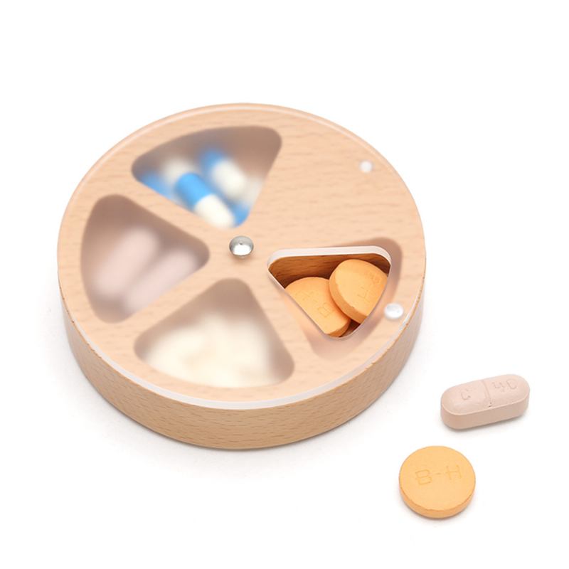 Η Θήκη Χαπιών Είναι Κατασκευασμένη Από Φυσική Οξιά Και Καρυδιά, Αυτό Το Κουτί Χαπιών Μικρού Μεγέθους Μπορεί Να Κρατήσει Το Χάπι Σας Ασφαλές, Ο Σχεδιασμός Περιστροφής Του Ακρυλικού Καλύμματος Είναι Πολύ Βολικός Για Να Παίρνετε Τα Χάπια, Συμπαγής Το Μέγεθος Είναι Εύκολο Στην Αποθήκευση