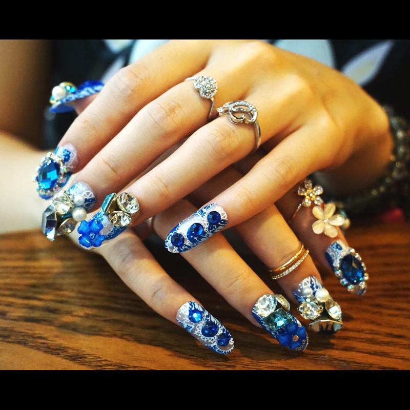 Μακρύ 24 Κομμάτια Νυφικά Ψεύτικα Νύχια Φινιρισμένο Επίθεμα Νυχιών Από Ζαφείρι Με Αυτοκόλλητη Βάση N054