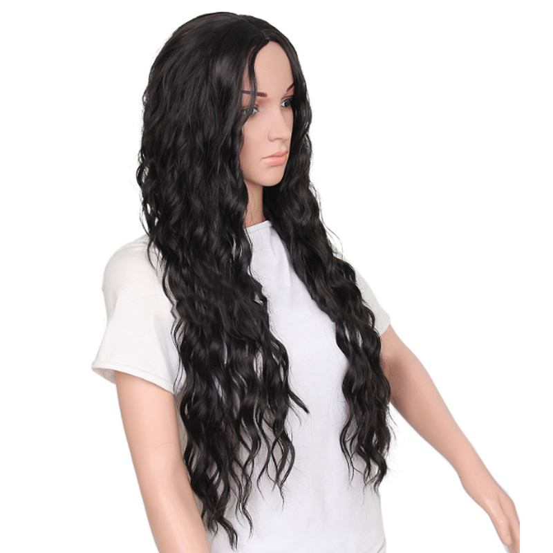 Μακρυά Σγουρή Περούκα Big Wave Μαύρα Συνθετικά Μαλλιά Ανθεκτικά Στη Θερμότητα Μεσαία Χωρίστρα Ολόσωμη Για Γυναίκες