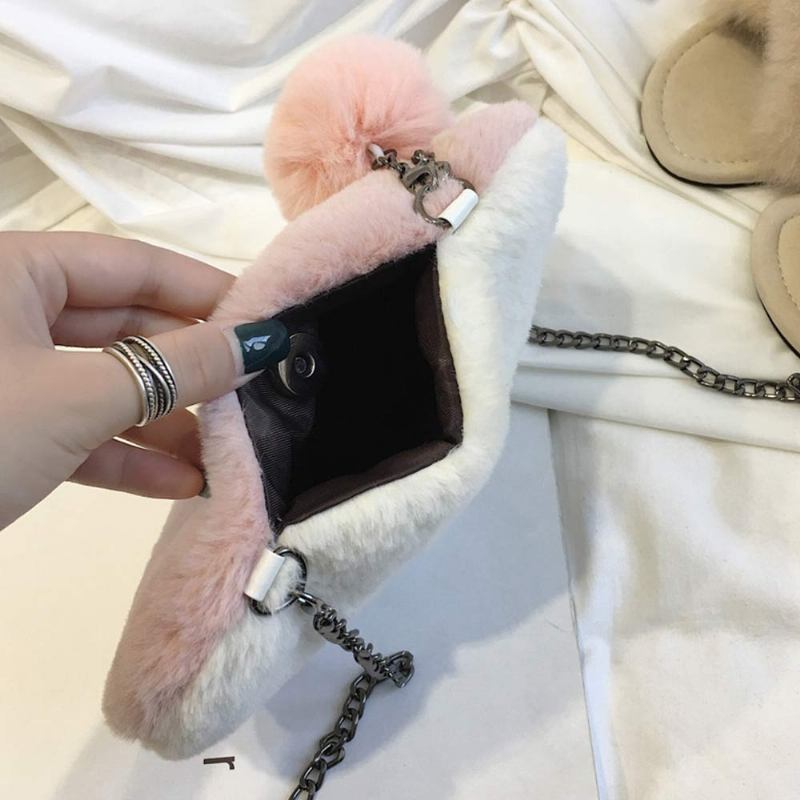 Μικρή Γυναικεία Τσάντα Σε Σχήμα Καρδιάς Cute Messenger Cross Body Εξαιρετικά Μαλακή Με Χνούδι