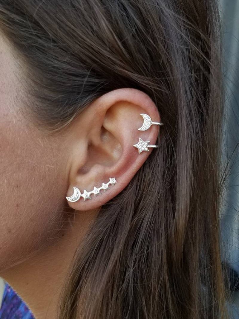 Μόδα 3 Τμχ Σκουλαρίκια Ασημένιο Χρυσό Κλιπ Αυτιών Moon Star Ear Stud Στρας Για Γυναίκες