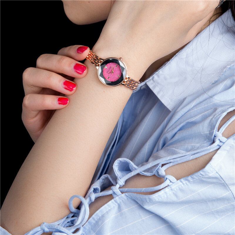 Μόδα Γυναικεία Ρολόγια Μοντέρνα Ροζ Χρυσό Λεπτό Λουράκι Πολύχρωμα Μινιμαλιστικά Χαλαζία Με Καντράν