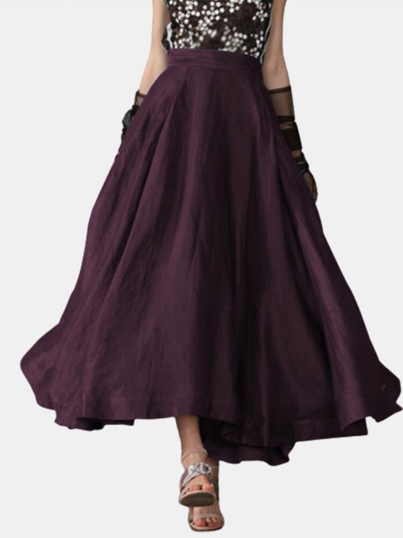 Μονόχρωμη Ελαστική Φούστα Μέσης Plus Με Τσέπες