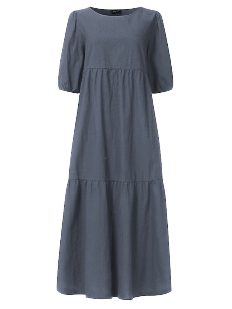 Μονόχρωμο Γυναικείο Φόρεμα Με Λαιμόκοψη O-λαιμόκοψη Puff Sleeve Plus Size