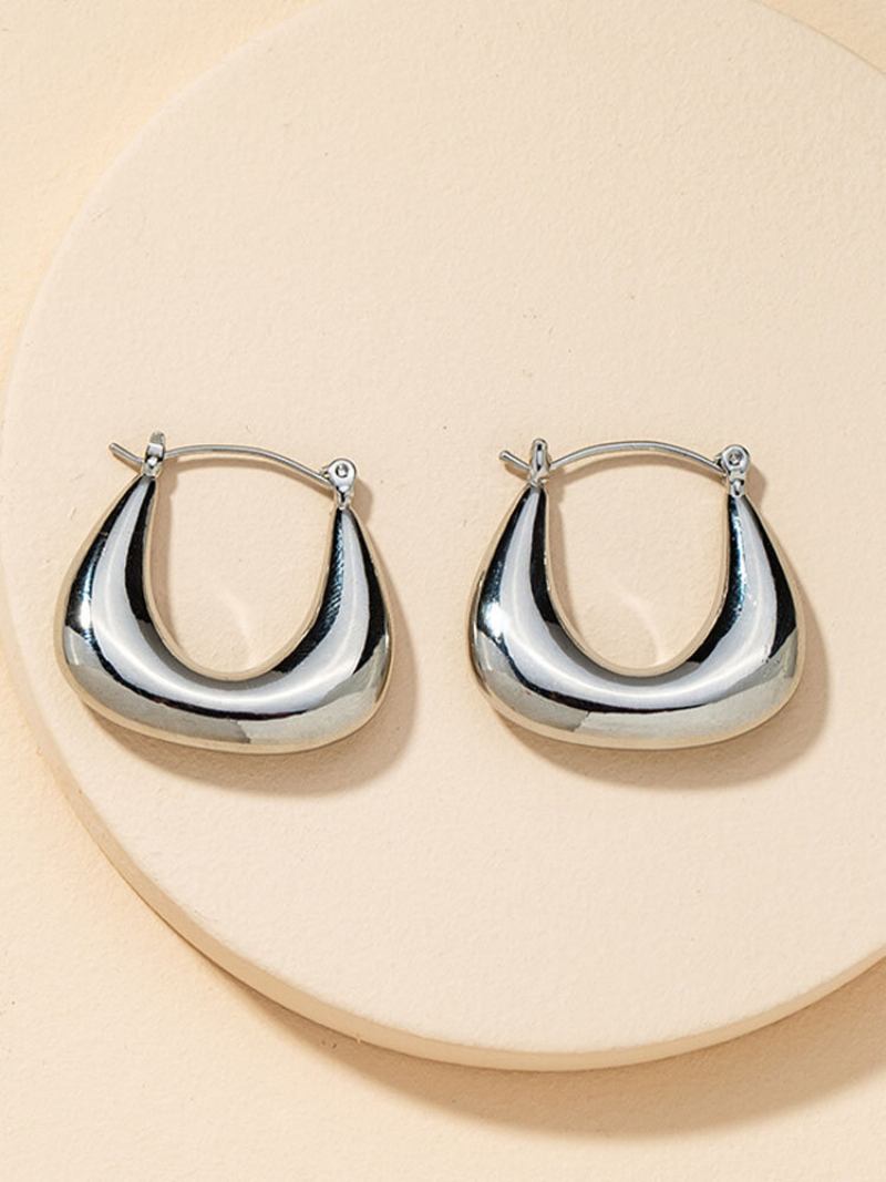Μοντέρνα Απλά Ασημένια Γεωμετρικά Σκουλαρίκια Κρίκοι Από Κράμα Σε Σχήμα U