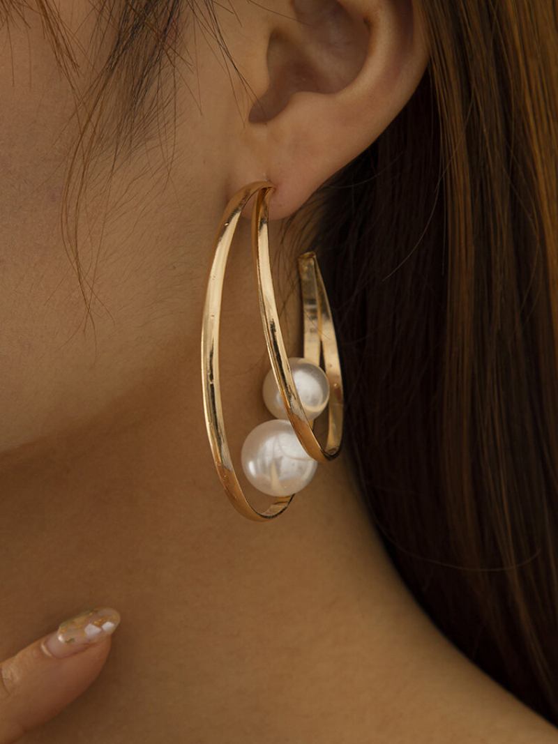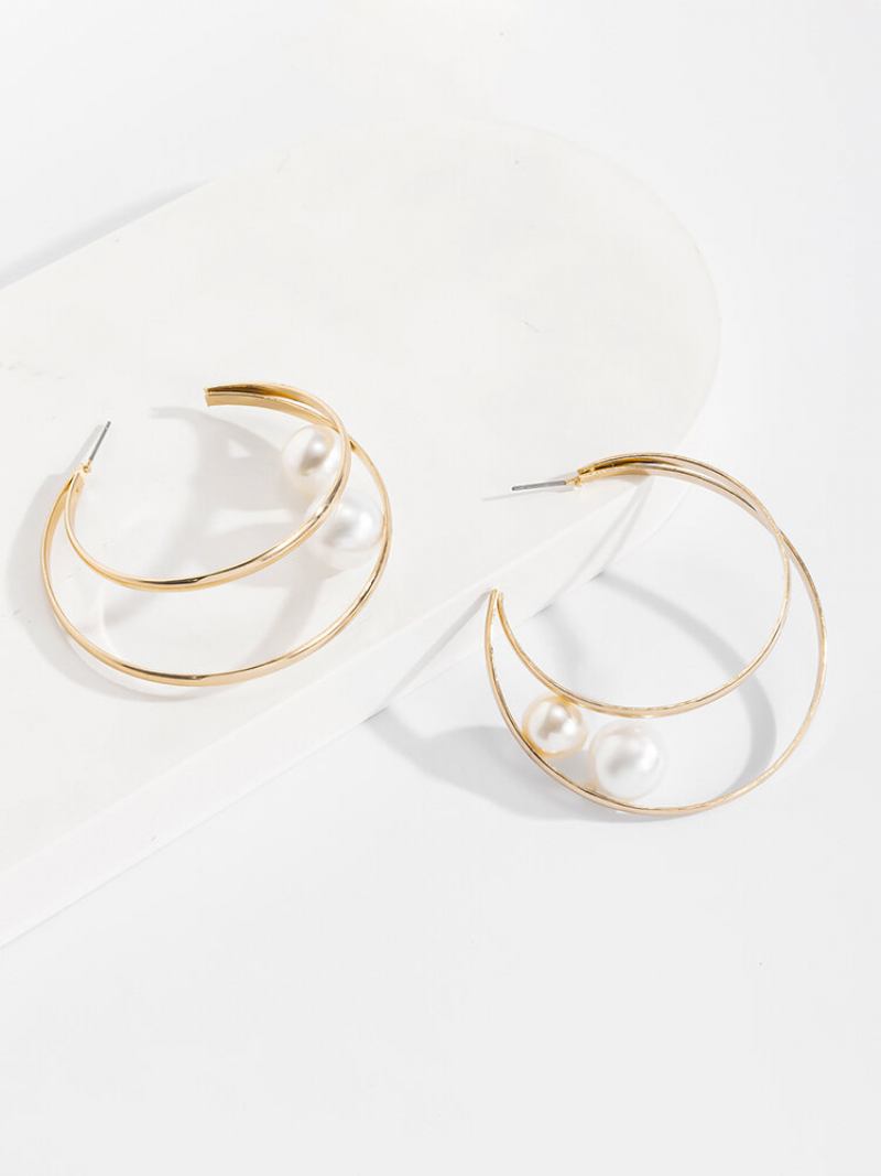 Μοντέρνα Απλά Διπλά Σκουλαρίκια Με Γεωμετρικό Κύκλο Με Τεχνητό Μαργαριταρένιο Σίδερο