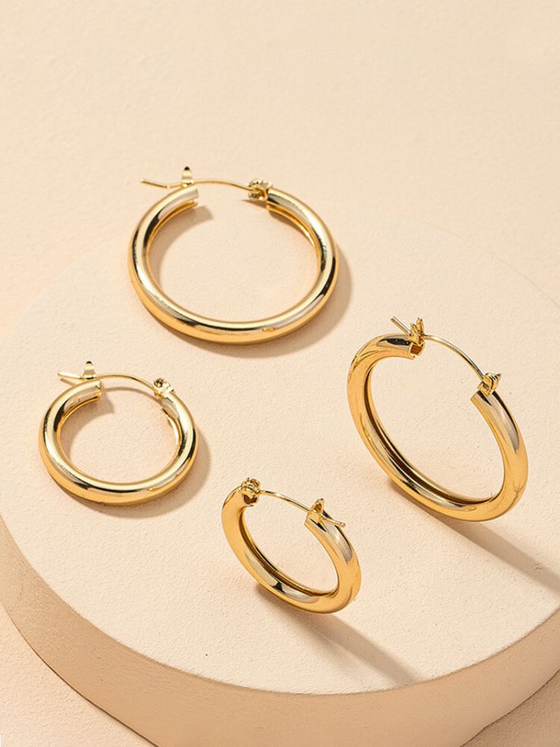 Μοντέρνα Απλά Χρυσά Σκουλαρίκια Κρίκοι Από Κράμα Σε Σχήμα Κύκλου