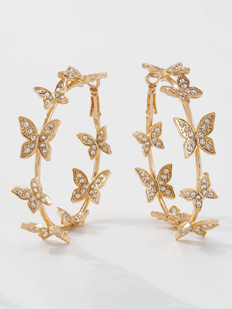 Μοντέρνα Πολυτελή Πλήρη Στρας Πεταλούδες Διακοσμητικά Κυκλικά Σκουλαρίκια Κρίκι Από Κράμα Ψευδαργύρου