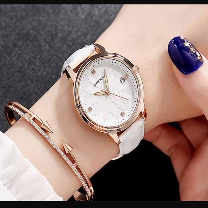 Μοντέρνα Ρολόγια Χαλαζία Με Στρογγυλό Καντράν Λουλούδι Με Αριθμητικό Απλό Δερμάτινο Λουρί Για Γυναίκες