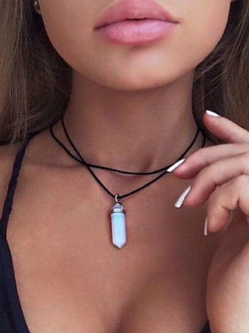 Μοντέρνο Κολιέ Εξάγωνο Οπαλικό Βελούδινο Κρύσταλλο Πολυστρωματικό Κρεμαστό Unisex Κοσμήματα