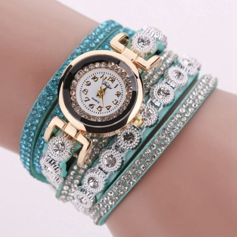 Μοντέρνο Ρολόι Καρπού Πολλαπλών Στρώσεων Γυναικείο Με Στρογγυλό Καντράν Bling Rhinestone