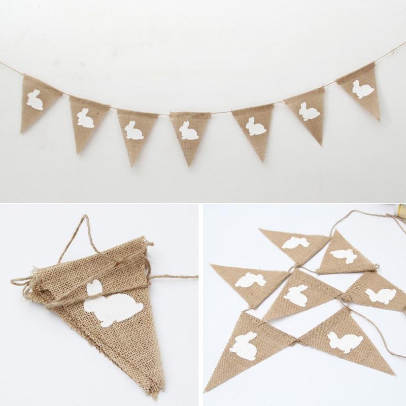 Πανό Από Λινό Τρίγωνο Μοτίβο Κουνελιού Με Σημαίες Από Λινάτσα Για Πασχαλινό Ή Φεστιβάλ Πάρτι