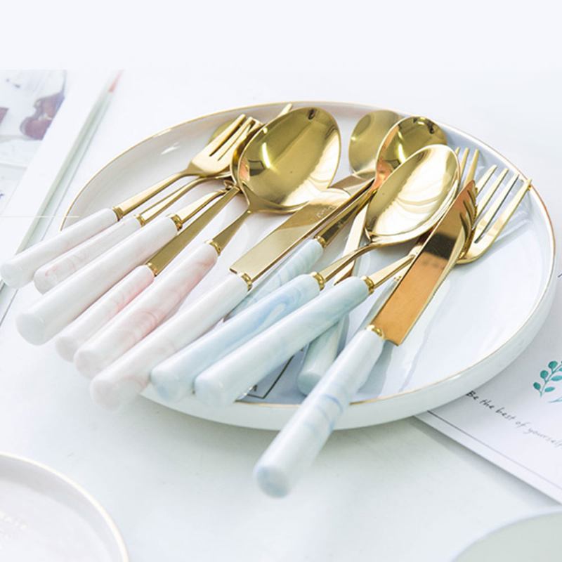 Πιρούνι Μαχαιριού Και Σετ Κουταλιών Μαρμάρινο Τριών Τεμαχίων Σε Σκανδιναβικό Στυλ Από Ανοξείδωτο Ατσάλι