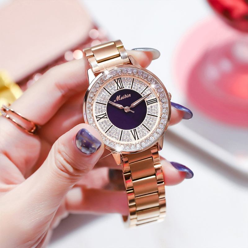 Πολυλειτουργικό Ρολόι Meibin Για Γυναίκες Πολυτελείας Με Τονισμένο Κρυστάλλινο Καντράν Και Αδιάβροχο Λουράκι Από Χάλυβα