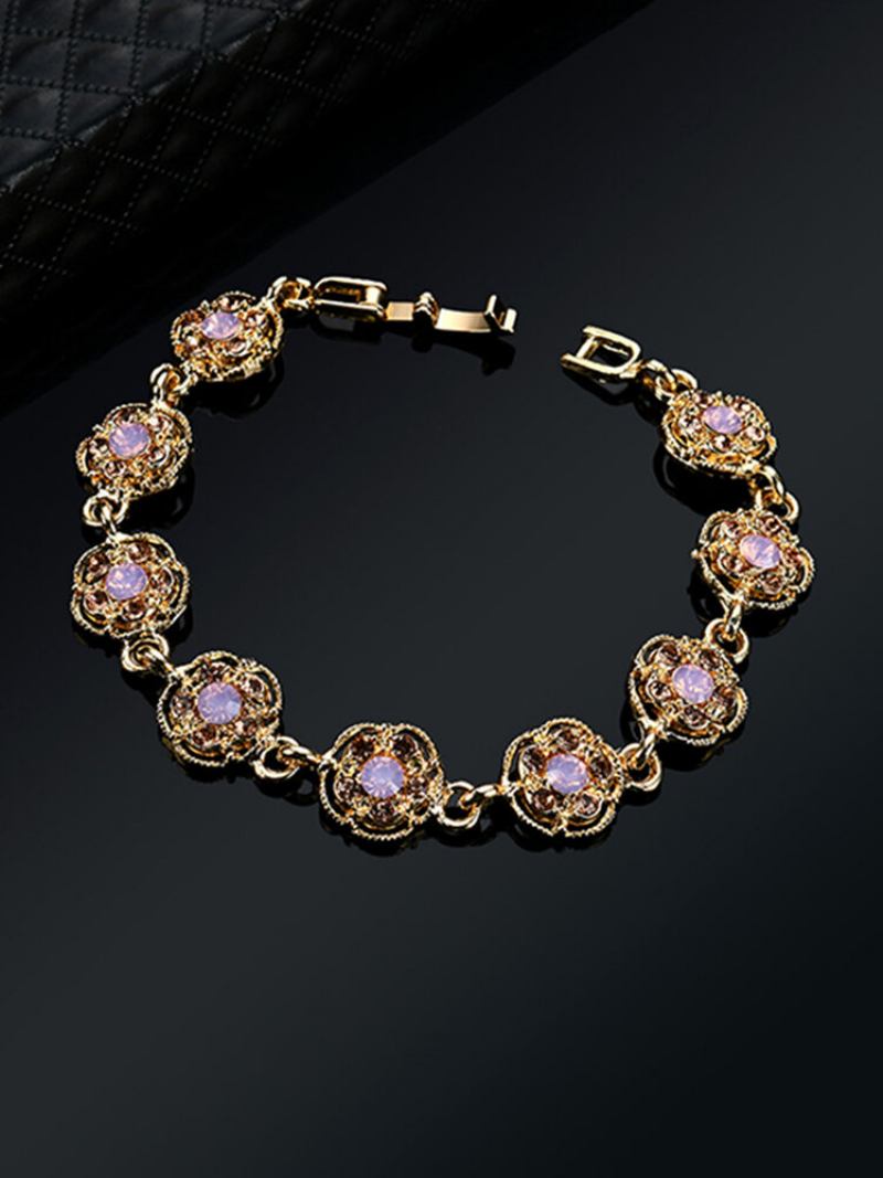 Πολυτελές Επιχρυσωμένο Βραχιόλι Με Ροζ Κρύσταλλο Κομψό Γούρι Λουλουδιών Δώρο Κοσμήματα Για Γυναίκες