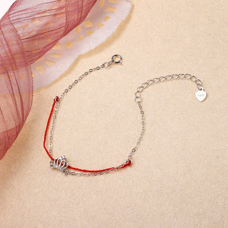 Πολυτελή 925 Στερλίνα Ασημένιο Κόκκινο Σχοινί Βραχιόλια Γούρι Με Ζιργκόν Με Αλυσίδα Από Ροζ Χρυσό