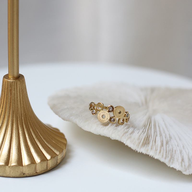 Πολύχρωμο Δαχτυλίδι Με Γράμμα Κύκλος Αγγλικών Φυσαλίδων Απλό Σε Κλασικό Στυλ Επιχρυσωμένο Ατσάλι Με Τιτάνιο 14 Καρατίων