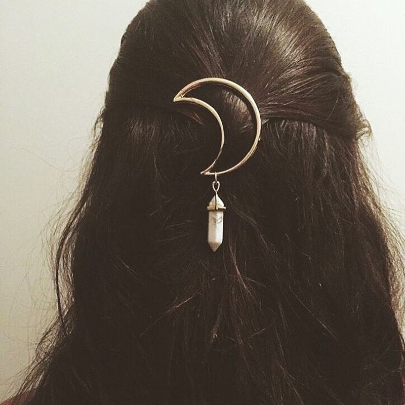 Πολύχρωμο Κρεμαστό Κόσμημα Από Φυσική Πέτρα Hollow Moon Charm Hair Clip Αξεσουάρ Μαλλιών Για Γυναίκες