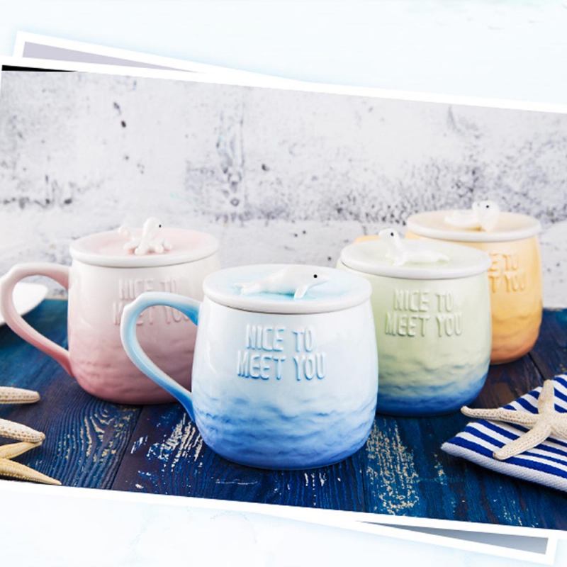 Πρωινό Κεραμικό Κύπελλο Αρωματοθεραπείας Για Εραστές Δώρο Κλιμακωτή Ράμπα Έγχρωμο Με Καπάκι Διακόσμηση Ωκεανού
