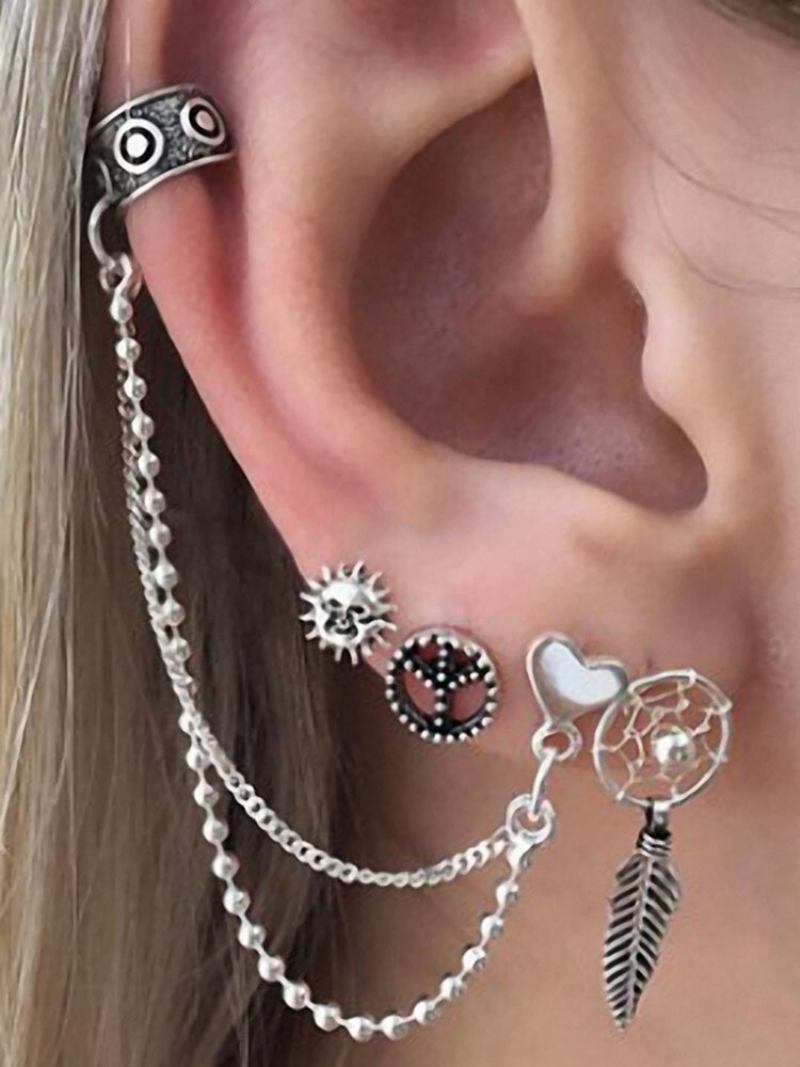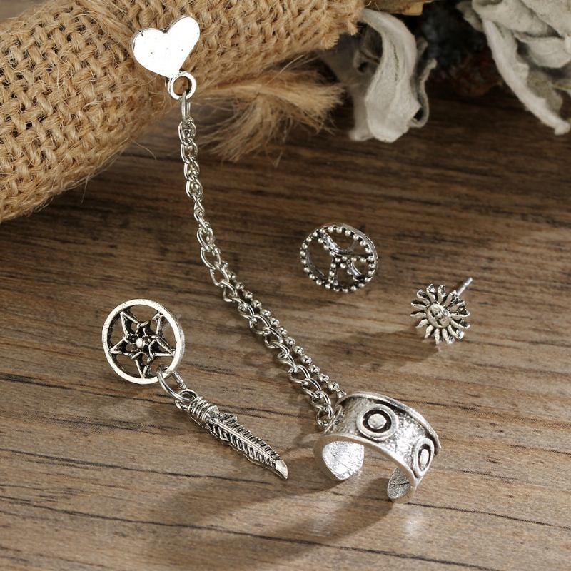 Punk Alloy Peace Symbol Sun Leaf Heart Stud Σκουλαρίκια 4 Τμχ/σετ Γυναικεία