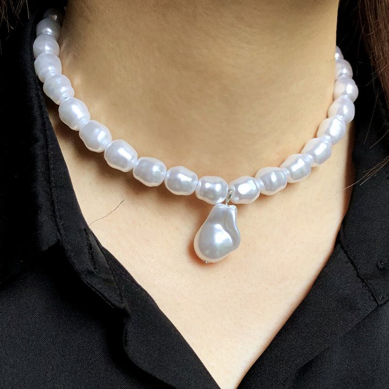 Ρετρό Ιδιοσυγκρασία Ακανόνιστο Μαργαριτάρι Κολιέ Μεταλλικό Μενταγιόν Αλυσίδα Κλείδας