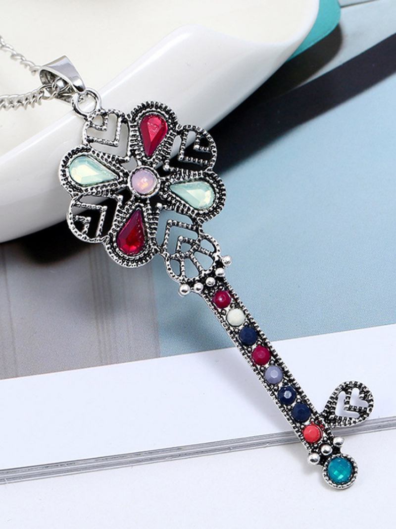 Ρετρό Μενταγιόν Με Κλειδί Γυναικείο Κολιέ Μακρύ Με Στρας Πολύχρωμο Αφρικανικό