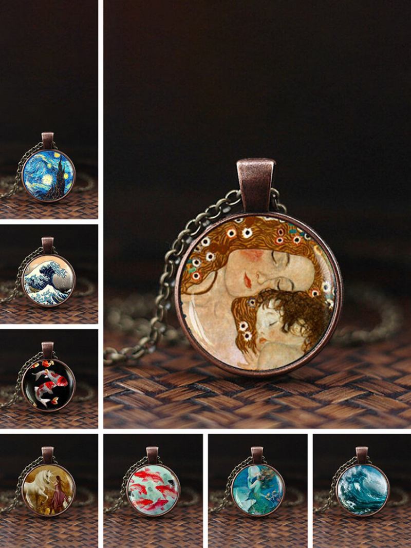 Ρυθμιζόμενο Κολιέ Mountain Sea Fish Ανδρικό Γυναικείο Με Στάμπα Γυάλινο Κρεμαστό