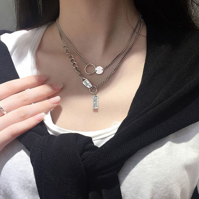 S925 Ασημένιο Κολιέ Με Ρετρό Κύκλο Με Γυναικεία Αλυσίδα Κλείδας Τετράγωνο Κοσμήματα Με Τυχερά Αγγλικά Γράμματα