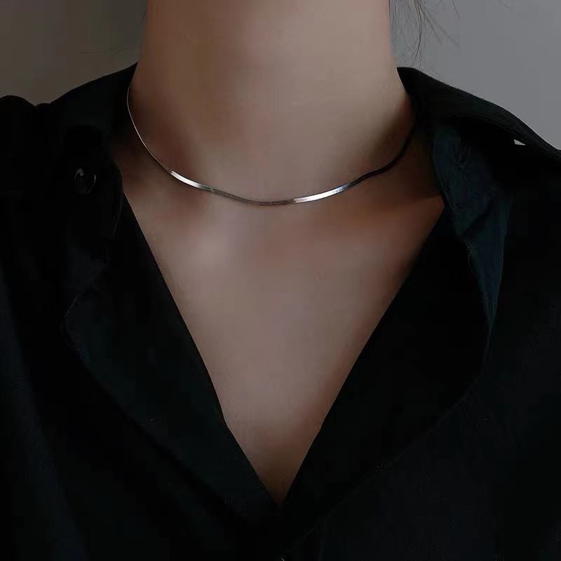 S925 Ασημένιο Κολιέ Πλατύ Φίδι Με Λεπίδα Με Αλυσίδα Από Κόκκαλο Γυναικείο Κορέας Κρύος Άνεμος Απλό Κοντό Με Με Κλείδα