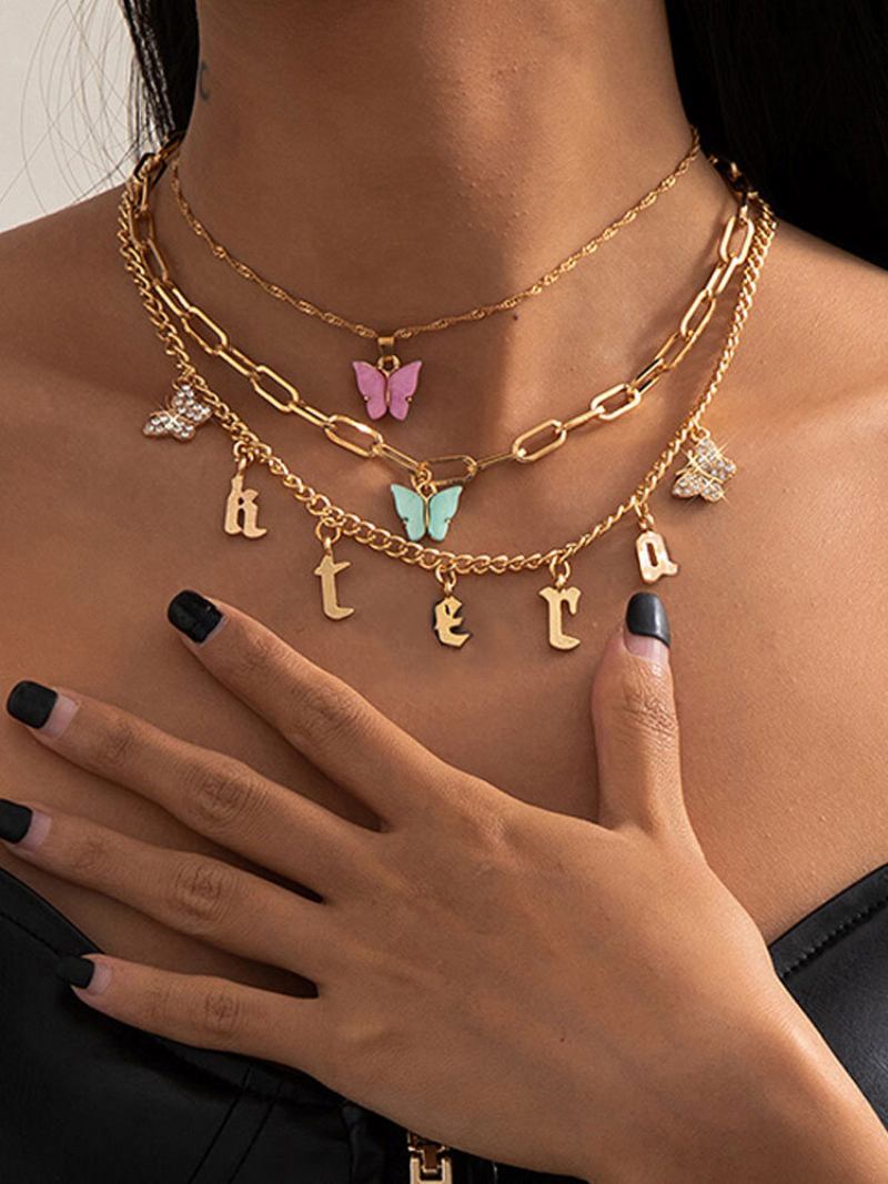 Σετ Κολιέ Με Γράμματα Πεταλούδας Πολλαπλών Στοιχείων Με Φούντα