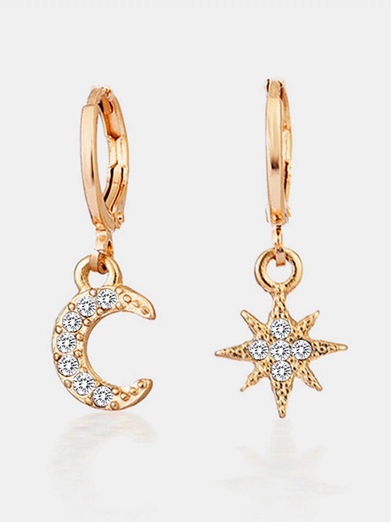 Σκουλαρίκια Από Ασύμμετρο Κράμα Με Μόδας Δημιουργικού Στιλ Με Στρας Και Σχήμα Φεγγαριού