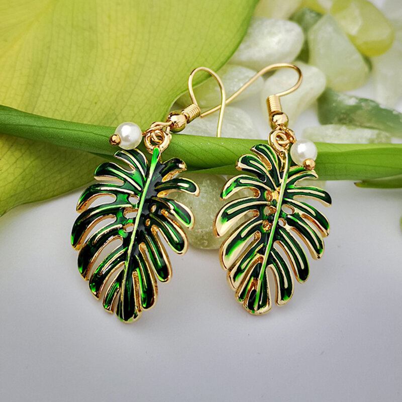 Σκουλαρίκια Bohemian Leaf Coconut Small Fresh 18k Επιχρυσωμένο Μαργαριτάρι Κρεμαστό Σκουλαρίκι