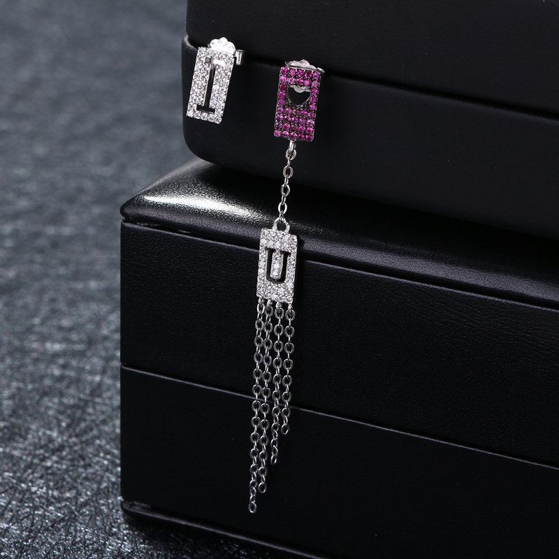 "❤ U"Size :Περίπου 6.9Cm X 0.5Cm / 2.71" X 0.19" Υλικό: Επιπλατινωμένο, Ασήμι 925. Ζιργκόν Η Συσκευασία Περιλαμβάνει:1 Ζευγάρι Ασύμμετρα Σκουλαρίκια