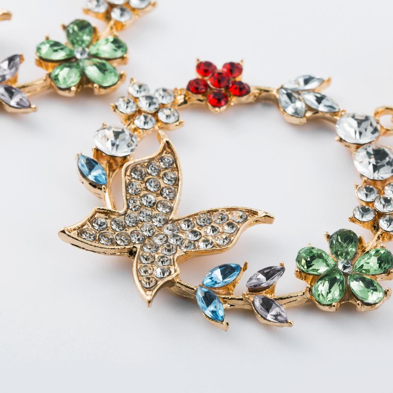 Σκουλαρίκια Λουλουδιών Και Πεταλούδων Από Κράμα Διαμαντιών Με Στρας