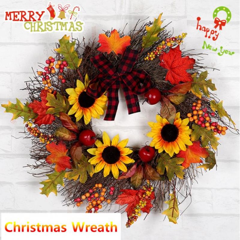 Στεφάνι Πόρτας Sunflower Maple Leaf 17.7 Ιντσών Φθινοπωρινή Διακόσμηση Σπιτιού Εξωτερικού Χώρου