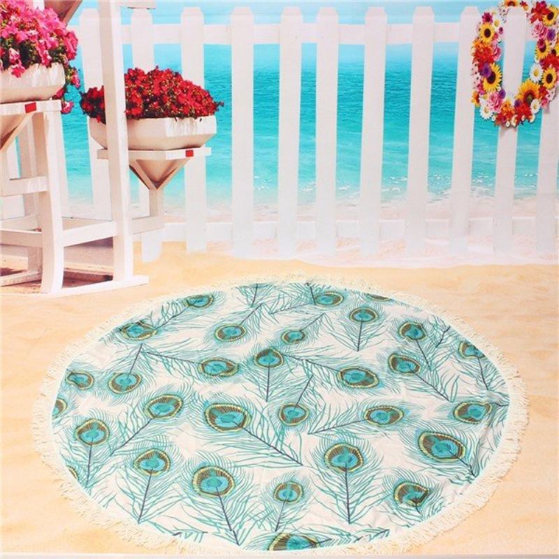 Στρογγυλό Κασκόλ Παραλίας Σάλι Πετσέτα Με Μοτίβο Με Πούπουλα Παγωνιού Διακόσμηση Χαλιών Γιόγκα