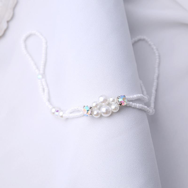 Summer Fresh Pearl Diamond Crystal Beaded Anklet Beach Simple Sexy Toe Chain