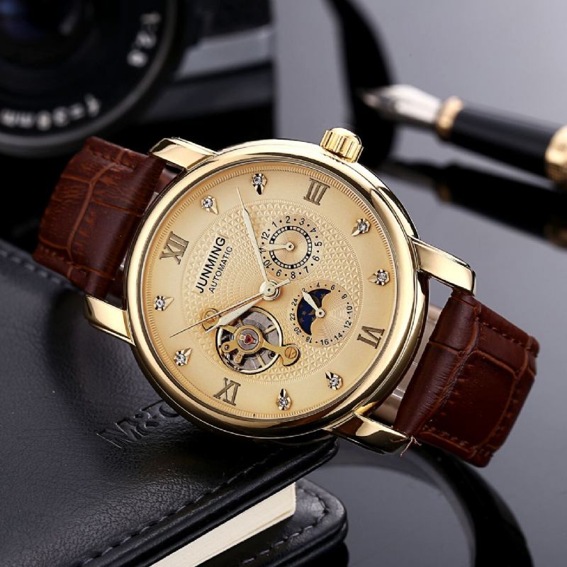 Το Νέο Αυτόματο Μηχανικό Ανδρικό Ρολόι Υψηλής Τάσης Με Πέντε Βελόνες Λουράκι Tourbillon Ποιότητας