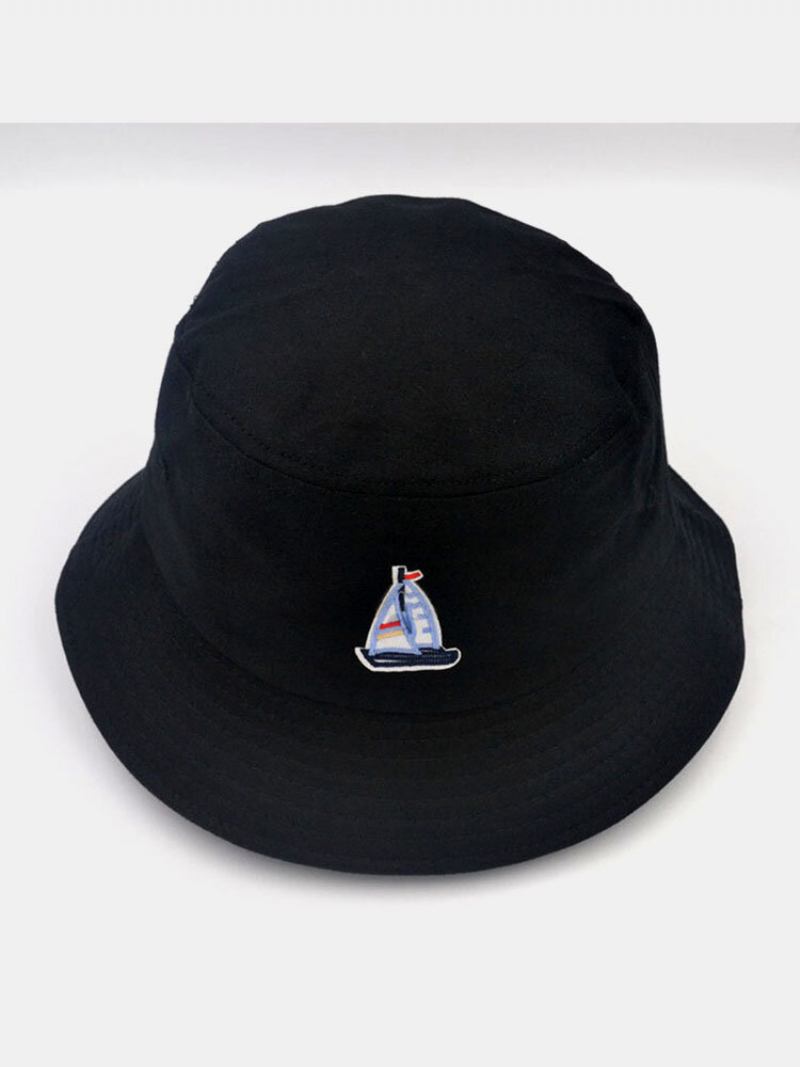Unisex Βαμβακερό Μασίφ Μοτίβο Ιστιοπλοϊκού Καπέλο Με Κεντημένο Casual Sunshade Κουβά