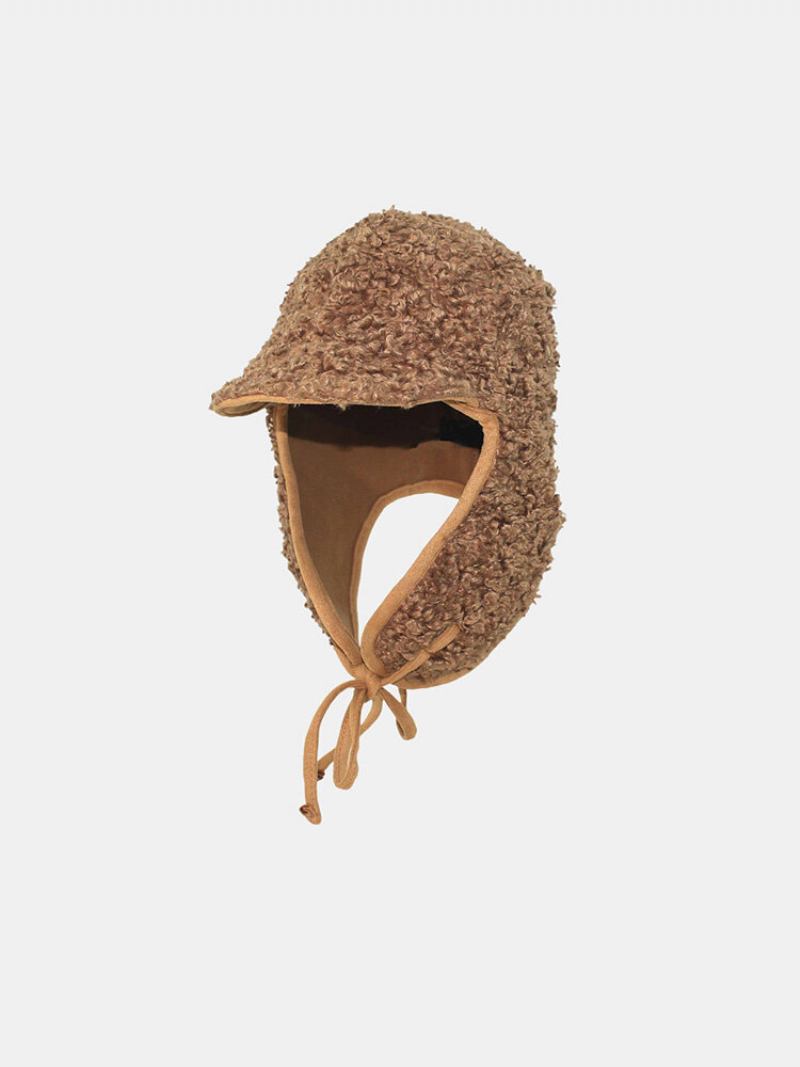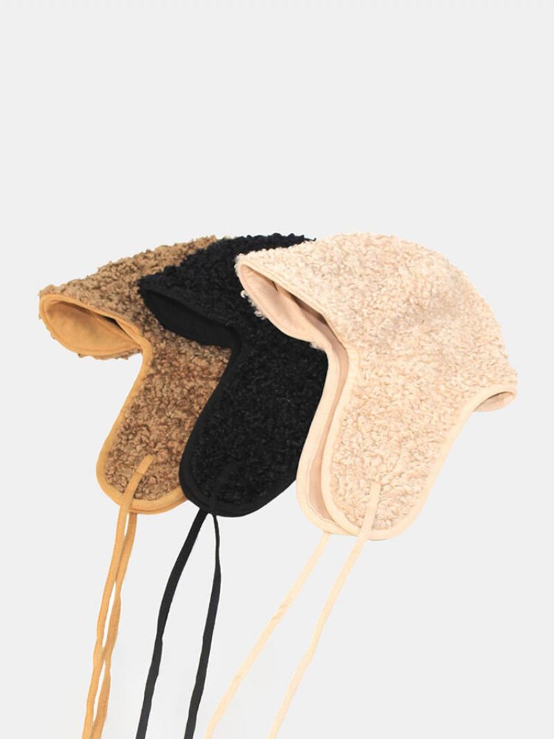 Unisex Lambswool Βελούδινο Μονόχρωμο Προστατευτικό Λουράκι Αυτιού Στερέωση Ρυθμιζόμενο Αντιανεμικό Καπέλο Παγίδας Προστασίας Εξωτερικού Χώρου