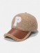 Unisex Lambswool Βελούδινο Pu Συνονθύλευμα Αντίθεση Χρωμάτων P Letter Patch Φθινόπωρο Χειμώνας Υπαίθριος Θέρμη Καπέλο Μπέιζμπολ