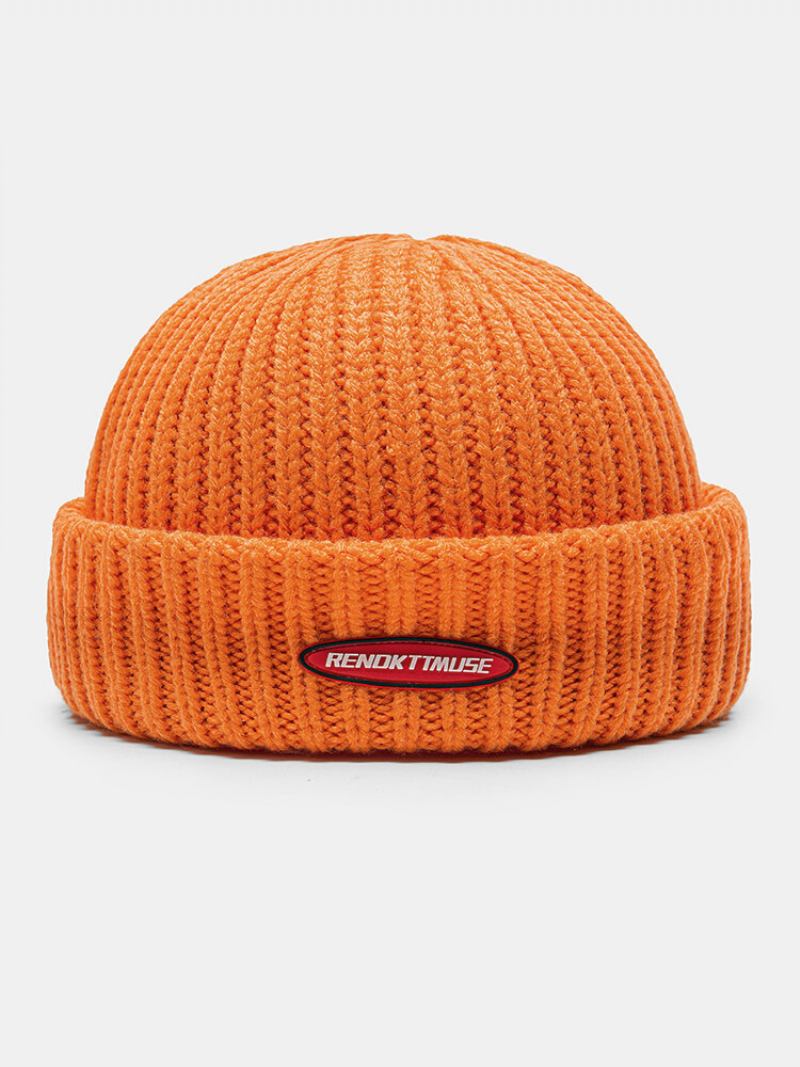 Unisex Πλεκτό Βαμβακερό Μονόχρωμο Γράμμα Ετικέτα Χοντρό Ζεστό Χωρίς Χείλος Beanie Landlord Cap Skull Cap