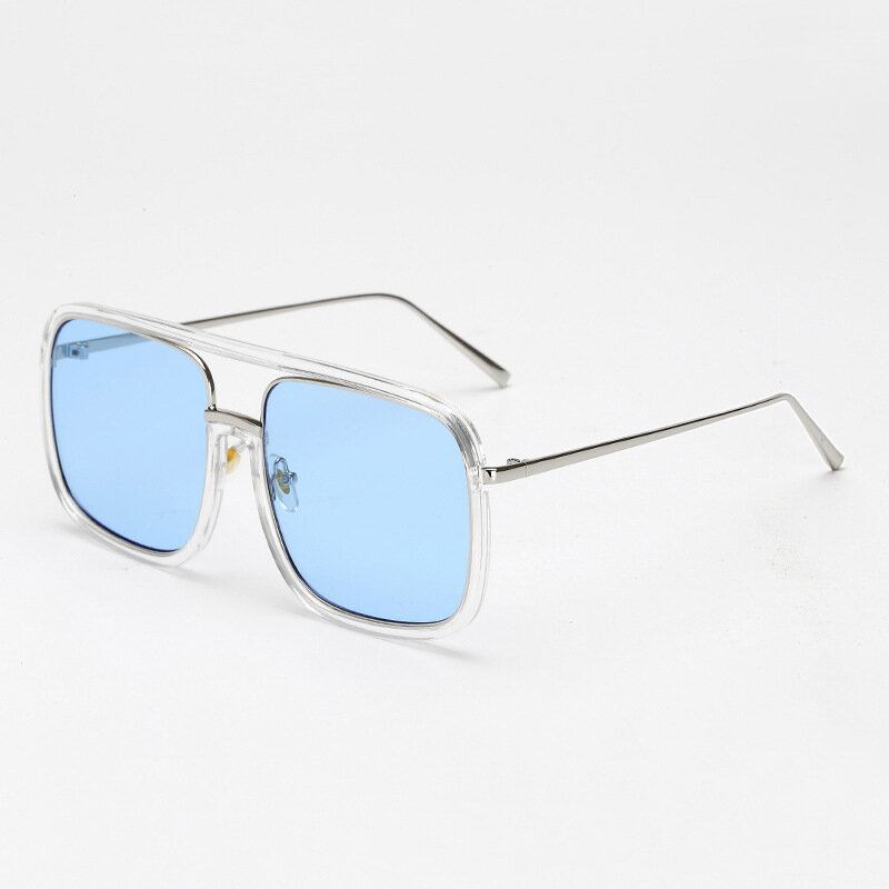 Unisex Retro Flat Mirror Τετράγωνο Μεγάλο Σκελετό Διαφανή Anti-uv Γυαλιά Ηλίου Για Γυναίκες