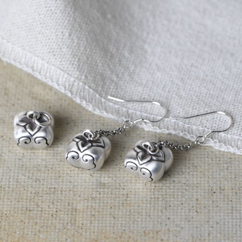 Vintage Ασημένιο Σκουλαρίκι 925 Κρεμαστό Λωτός Μακρύ Γυναικεία Κοσμήματα Δώρο