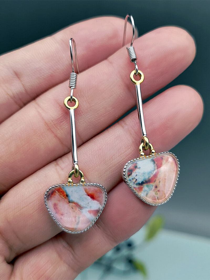 Vintage Bohemian Πολύχρωμα Γυαλισμένα Οπάλιο Μεταλλικά Σκουλαρίκια Γεωμετρικού Σχήματος