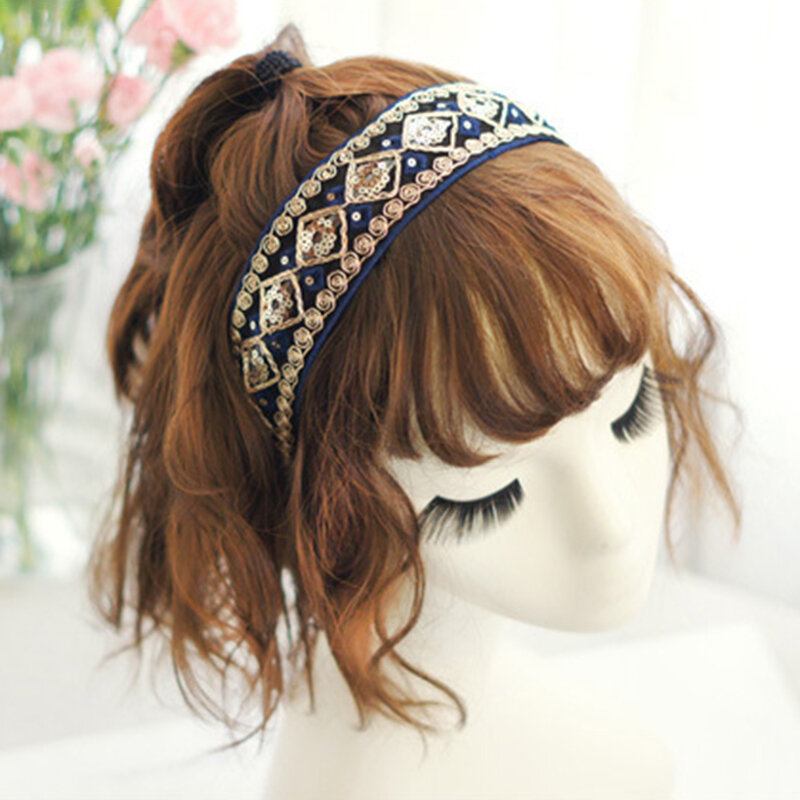 Vintage Δαντέλα Hairband Bohemian Geometric Diamond Πούλιες Κεντημένη Υφασμάτινη Κορδέλα