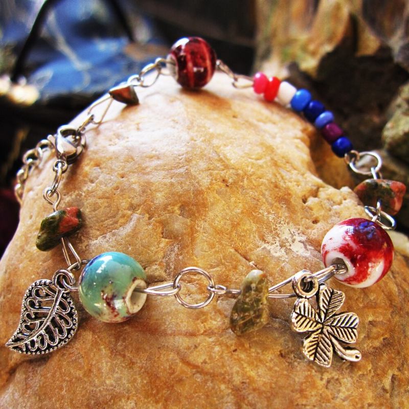 Vintage Γοητεία Βραχιόλι Κεραμικά Bead Leaf Flower Plants Αλυσίδα Ethnic Κοσμήματα Για Γυναίκες