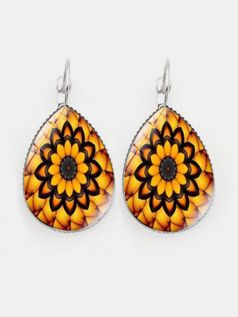 Vintage Γυαλί Εμπριμέ Γυναικεία Σκουλαρίκια Γεωμετρικά Λουλούδια Κρεμαστά Δώρο Κοσμήματα
